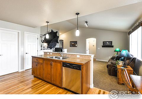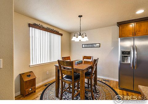 Colorado ranch in the heart of Johnstown across from Park and only blocks from restaurants, schools and library. Lots of volume with vaulted ceilings and an open floor plan. Beautifully stained soft-close cabinets, pantry, painted trim & oil-rubbed bronze hardware are off-set by hickory wood floors upstairs, and stained knotty pine trim and doors in basement. You'll love entertaining & gaming in the open rec room with bar area that also makes a great dance floor! Mtn views and summer shade-ahh!