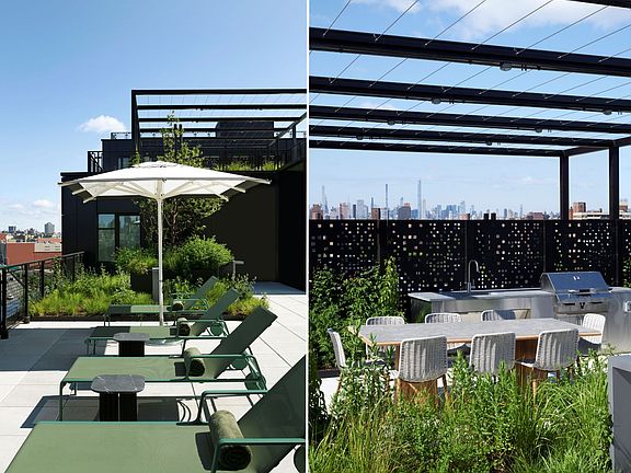 - Exterior features: Bicycle storage, Broker Exclusive, Childrens Playroom, Cold Storage, Concierge, Electric Vehicle Charging Station, Fios Available, Garden, Leed Registered, Live In Super, Locker Cage, Media Room, No Fee, Package Receiving, Parking, Public Outdoor Space, Recreation Facilities, Roofdeck, Walk In Closet