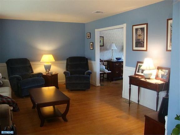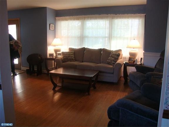 This home has great curb appeal with so much to offer it is situated on 1.38 acres. Entrance hall leading to living room, dining room with chairrail, eat-in-kitchen with new countertops, large family room with wood burning fireplace, powder room, 3 season sunroom which has been freshly painted, new flooring and exits to covered patio overlooking beautiful flat lot. Second floor has large master bedroom with bath, four additional bedrooms plus center hall bath. Hardwood floors throughout most of home. This home also has a two car garage plus lots of upgrades including public sewers, central air, newer windows, newer siding, newer lower roof and 200 amp service. Washer, dryer and refrigerator are included. This home has it all.