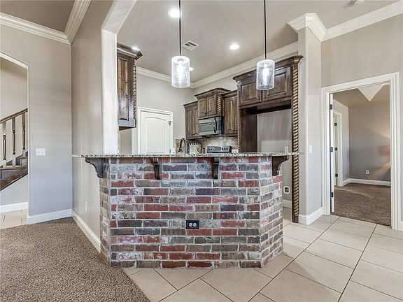 This 4 bed / 2 bath single family house with expert craftsmanship and care is made for entertaining with a great floor plan for both entertaining inside or out! A fireplace on the covered patio, open floor plan on the main level and large bonus room upstairs will allow for great flow for any gathering. Granite throughout, Custom Cabinets, Upgraded Trim Package, Stainless Steel Appliances, Fully fenced yard with Sprinkler, Hand Textured Walls, Whirlpool Tub, Community Walking Trails and Playground, and located near restaurants and shopping are a few of the wonderful features included with this home. Includes a Storm Shelter. Don't miss out! Less than 10mins to Walmart, Sprouts and Aldi Qualifying Criteria: Deposit: 1 month rent Application Fee: $45 Minimum Income: 3 times the rent No prior bankruptcies, evictions, judgments No smoking Allowed. Additional fee for pets. Renter pays for Utilities. Minimum 12 month lease Tenant pays for all utlities
