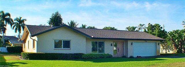 LOWEST priced single family home in Palm River! This is a one owner well maintained single family home in great location. Beautiful lush private backyard, extra large garage, paved driveway, 2 bedrooms, master bedroom has a large walk-in closet and full bath with walk-in shower. Second full bath has a tub and shower. Home has tile and laminate floors throughout-no carpet. Large screened lanai with west views and roll down shutters. The rest of home has manual shutters. Newer thermal windows, irrigation well, newer A/C, newer water heater. Large work area in extended garage. Light and Bright home. Great starter home, investment, rental or winter retreat! Home is ready for a new owner and easily ready to use this winter season, just bring your own furniture. Palm River surrounds the lush LaPlaya Golf course, has beautiful views, bridges, walking park and best of all NO HOA fees and no restrictions on pets and no HOA approval process. Great schools, close to shopping, WEST of Airport Road! Only 3 miles to Wiggins State Park beach!! Can't get closer to Gulf at this price for a single family home in Naples! Easy to view!