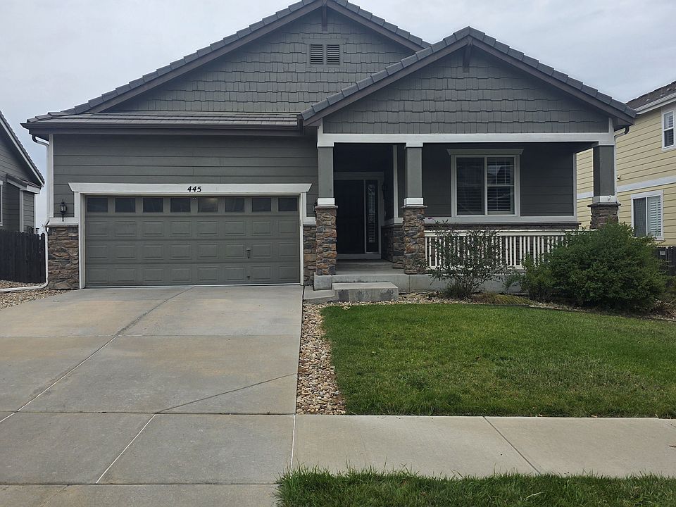 Well-maintained home in the sought after Boulder County section of Erie. Ranch with a walk-out finished basement and a generous two-car garage. Main level includes three bedrooms, two bathrooms, kitchen with large pantry and a spacious laundry room. Primary bedroom with ceiling fan and ensuite five-piece bath; additional full bathroom equipped with shower and tub. Finished basement includes huge Great Room, two additional rooms suitable for bedroom, office, craft room as needed, full bathroom and large storage area. Hardwood and tile flooring throughout main and basement levels. Plantation shutters on all windows. Wired for high-speed internet. Backs onto open space and walking trails. Prior tenants - three years and four years respectively - prized the spaciousness, surround sound, abundant storage, 9" ceilings, security system, sprinkler and drip system. Attached garage is drywall finished and painted. Short walk to Thomas Reservoir, neighborhood playgrounds, Erie Recreation Center, bus, medical center, Olde Town restaurants and bars. Full home security system. Owner pays Home Owner's Association dues. Smoke free house. Pet may be acceptable: owner-approved; $35.00 monthly pet rent. $40 fee for each adult applicant requesting credit and background check. One-year lease.