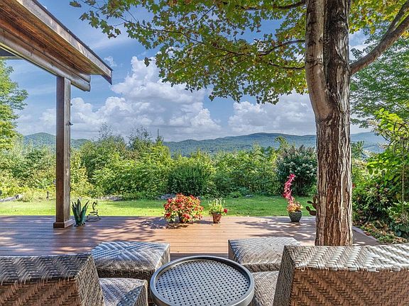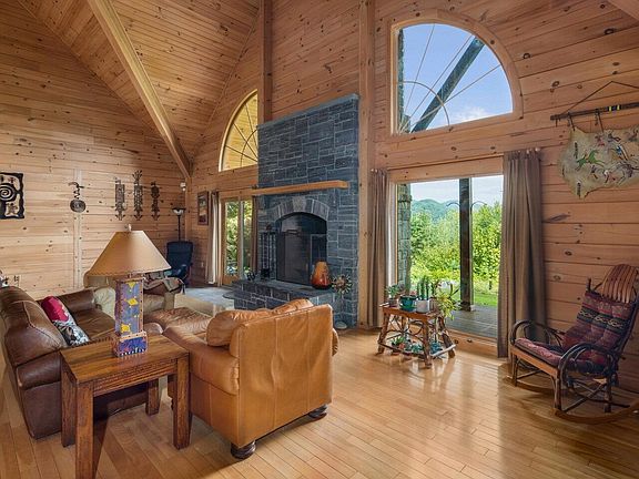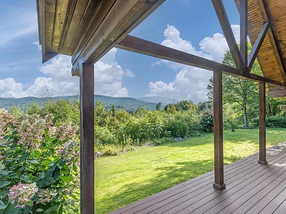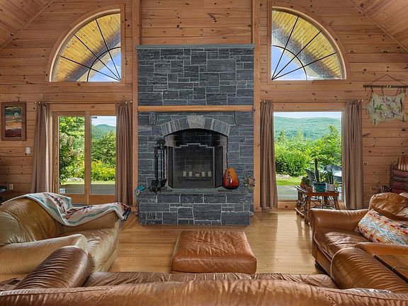 Enjoy the beauty of Vermont in this spectacular and timeless log home. Built in 2000 and located on a private 4.93-acre lot with a beckoning tree-lined driveway in an established neighborhood. Positioned to take advantage of the views across the valley, the open-concept great room has a 28´ceiling of tongue-and-groove eastern white pine, and a floor-to-ceiling fireplace flanked by two levels of windows. The kitchen has a 9´ breakfast bar with granite countertop and custom hickory cabinets, and flows comfortably to the dining area and great room. At the opposite end of the great room is a primary bedroom suite with soaring ceilings and a quarter-arched window. The en suite bath features a soaking tub. Upstairs are 2 more bedrooms, a study, and spacious bonus room. The finished basement is ready for a gas/wood stove that could supplement the house’s radiant heat and includes an entertainment room suitable for large family gatherings, movie nights, or a game of pool/ping-pong. In addition, this level also has a laundry closet, 2 offices, and tons of storage. Spanning the entire length of the house is a spacious deck where you can enjoy mountain views and bask in the alpenglow. The front of the house also features a full-length deck with a main entrance and views of a rock ledge covered with native flora.