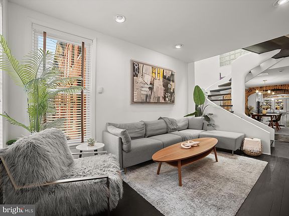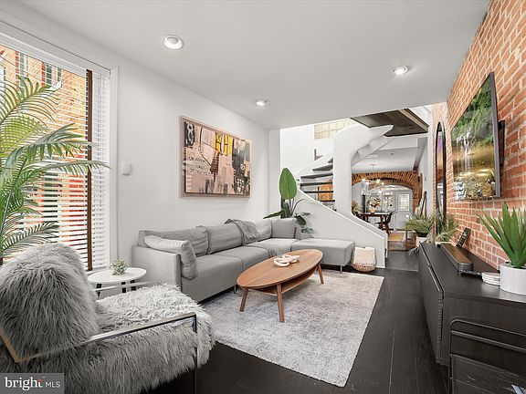 Welcome to 455 Grindall Street—an Artfully Curated Rowhome in the heart of the Federal Hill Historic District! This fully customized 2-bed, 1.5-bath home is an architectural masterpiece, blending modern design with timeless character starting with the main level open floor plan living room, dining room and kitchen. Step inside and be captivated by the stunning open-view spiral staircase and a beautifully framed kitchen featuring sleek cabinetry, high-end appliances, and stylish finishes. The home’s exposed brick, rich hardwood floors, and modern lighting package create a warm yet sophisticated ambiance, while the wood beam-accented ceilings add a touch of rustic charm throughout. Just off the kitchen, escape to your private backyard oasis—a screened-in porch opens to a serene, low-maintenance rock garden, perfect for relaxation or entertaining. Upstairs, natural light pours in through the skylights, illuminating the loft-style upper level. The spacious spa-inspired bathroom is a true retreat, featuring a frameless glass walk-in shower ensconced by a classic glass block wall, a serene jetted soaking tub, and elegant modern finishes. The open-air bedrooms are thoughtfully positioned at opposite ends of the level, providing both comfort and privacy. Enjoy the breathtaking city, harbor, and Patapsco River views from the two-tier rooftop deck, an ideal space for morning coffee or evening gatherings. The fully finished basement offers incredible flexibility, whether as a recreation room, den, or home office—complete with a powder room, laundry, and additional storage. This home is a rare find for those seeking luxurious, design-forward urban living in a prime location. Just one minute from Federal Hill Park and a quick four-minute drive to I-395/I-95, you’ll have the best of Baltimore right at your doorstep!