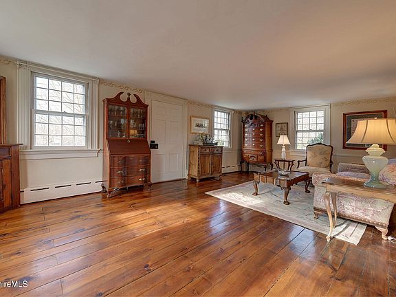 Meticulously maintained 1800s farmhouse with old-world charm and mountain view. Idyllic weekend retreat or year-round home on quiet road. Original 12-over-12 pane windows, wide-board floors, working fireplaces with beehive oven in dining and family rooms, all-season glass-enclosed sunroom with sliding doors to patio. Brick-walled kitchen with new cabinets and appliances. First floor family room, living room, laundry room with new washer, full bath, study. Upstairs master bedroom with sitting area, numerous closets, 3 more bedrooms and full bath. 3 landscaped, level acres with room for a pool. Attached 2-car garage and 2 barns offer extensive opportunities plus income from garaging neighbors' cars. Near Tanglewood and Great Barrington and minutes from farmers markets, antiquing (see suppl)