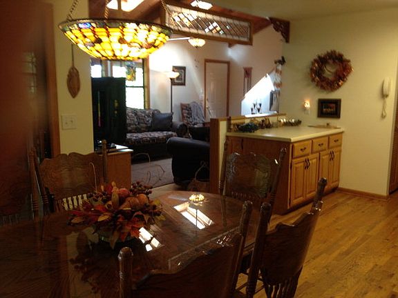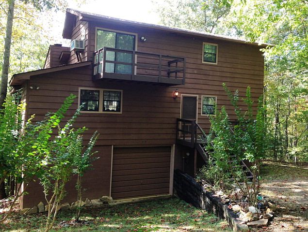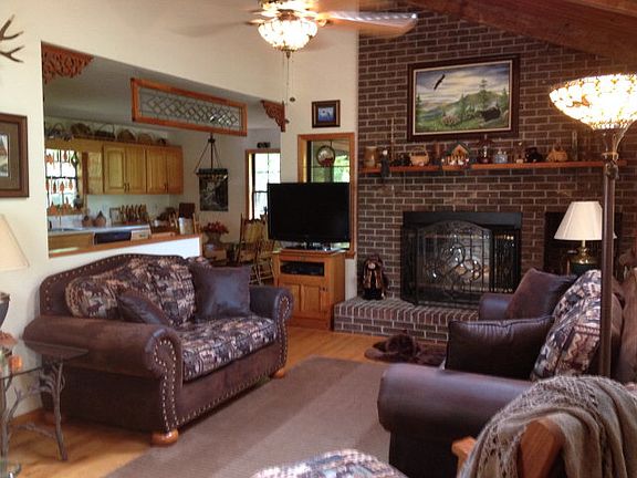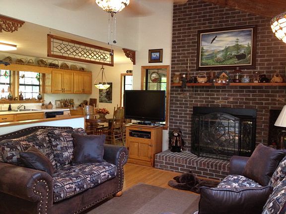 Hurray!!A great floor plan that is different and cabin that exudes character!This cabin is nestled at the end of the road.Interior has a lovely fireplace in the living room, beautiful wood floors,skylights, Large kitchen with dining area near large window to look out over the woods. Upstairs private loft and bedroom with bath.Main floor has bedroom,living room,bathroom,kitchen,dining area,and laundry area. AND!!There is a basement,with a bath, an open area of potential, and a garage. You must look at this one before you purchase anything! Charming.