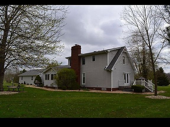 Beautiful well built home with 3 possible 4 bedrooms 2.5 bath. Sits off the road with a blacktop driveway. Large bedrooms, living room, and family room. Situated on 6+ acres. 3 car 42x24 attached garage with water and electric and garage door openers. A 40x60 garage with heat, water, electric, and in closed lean to. Another garage 40x46 with heat, water, and electric. Close to West Union School. Country living but only 5 minutes to town. BRICK FIREPLACE, BRICK FOUNDATION, NEW HVAC