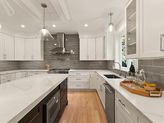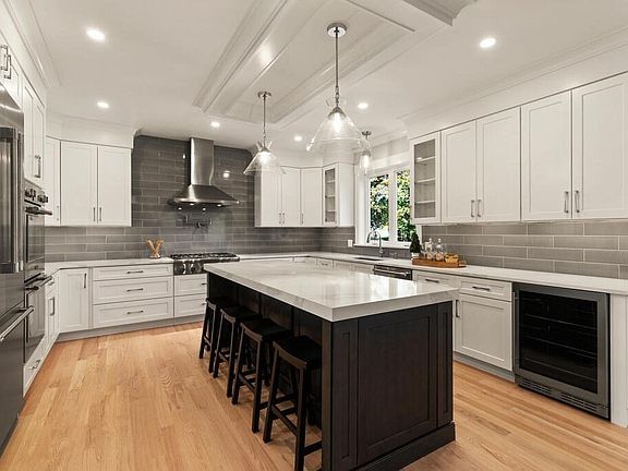 • Features: Flooring - Hardwood, Dining Area, Pantry, Countertops - Stone/Granite/Solid, Kitchen Island, Cabinets - Upgraded, Exterior Access, Open Floorplan, Recessed Lighting, Stainless Steel Appliances, Pot Filler Faucet, Wine Chiller, Gas Stove, Lighting - Pendant, Crown Molding