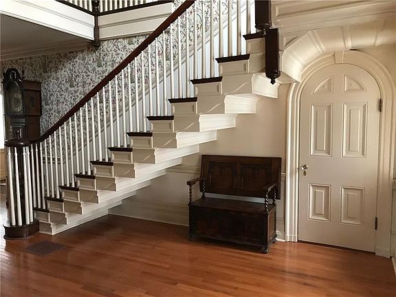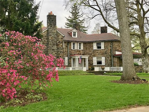 Welcome to a unique historic stone home Edgeworth! Architect George S. Orth designed this home in the early 1900's after completing Wilpen Hall in Sewickley Heights. The craftsmanship in the stonework, wood details and scale of rooms makes this a grand yet very comfortable home. A brick pathway brings you to a classical portico with a porch that extends to a pergola on the left and a covered porch on the right. Handcut sandstone, copper gutters, tile roof and working wood shutters exemplify the attention to detail throughout this house. Gracious living spaces on the first floor include wide center hall that opens from front to back of house with a large window lighting the staircase and hall. The highlights are the grand cantilevered staircase and wood burning fireplace. Wide doorways with pocket doors (original glass!) open to living and dining rooms. Large living room with wood burning fireplace, French Doors opening to the porch, parquet floors, chair rail and cove ceiling. Large dining room with sitting area, fireplace, and many windows. Kitchen is a nice size and ready for your personal touch. Upstairs there are 3 bedroom suites each with own bath, ample closets and decorative fireplaces. Another room could be an office or extension of Master suite. A fourth bedroom and bath are on the 3rd floor along with more storage. There is a lovely private side parterre garden that is surrounded by the wisteria covered pergola and mature plantings. The back yard has plenty of room for playing and gardening. The 3-car detached garage has a heated workshop. Edgeworth Elementary School is a short walk away; Sewickley Village and Quaker Village shopping is close by; easy access to Route 65 and Downtown. The location, history and opportunities for this home make it a truly special find in Sewickley!