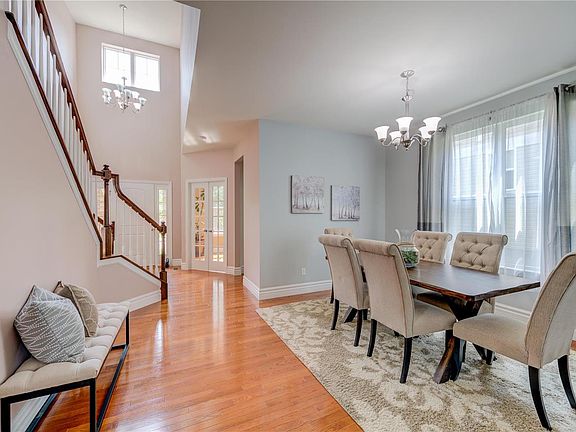 1.5 story in Reserve at Chesterfield, over 4700 sf of living space. Hardwood floors flow throughout the main level. Open floor plan is great for entertaining and keeping the family connected. Granite countertops, island with seating for 4, gas range with hood, backsplash, planning nook, & walk-in pantry highlight the kitchen. Great room has gas fireplace and lots of natural light. Primary suite on the main level features shower and jetted tub, large vanity, and a walk-in closet the full length of the bathroom suite. Main floor laundry and large drop zone by garage entry round out main level. Upstairs a large loft area provides family space outside the 3 bedrooms and full bath. Lower level was recently finished with a large rec room, media room (can be 5th bdrm), exercise room, 2bonus rooms, full bath and wet bar. You can walk out to a large patio on the lower level and access the composite deck off the kitchen. All appliances and TVs convey, new roof (6/23), trails and parks nearby.