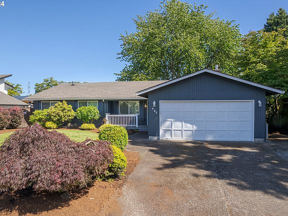 Dont miss this opportunity to enter into a high end neighborhood at an attractive price point. This home is in an excellent location, within minutes of Autzen stadium and the Willamette River path! Home has nice separation of space with two eating areas and a vaulted living room as well as a primary bedroom with double closets and a private bathroom. The kitchen was just upgraded with newer stainless appliances and freshly painted cabinetry. Home boasts an efficient Trane brand heat pump, a gas fireplace to get cozy by in the winter and a tankless gas hot water heater for days when that extra long shower is a must. Outside, you'll find new exterior paint, spruced-up landscaping and year round outdoor enjoyment of the large backyard thanks to the covered back patio. The property also has an outbuilding, perfect for a quiet work area or out of town guests. Wonderful opportunity, come see for yourself!