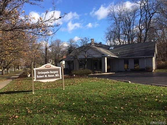 3,238 SF professional medical office building, facing the Erie Barge Canal in Lockport, NY. Custom built masonry building built in 1983, addition in 1989, gas heat w/central A/C, partial concrete basement, blacktop parking for 15+/- cars, large landscaped corner lot, 144' x 132', roof 10 years old, cathedral ceilings in waiting room, seats 15+, five (5) examination rooms w/exam tables, eight (8) work stations, desks, shelving,