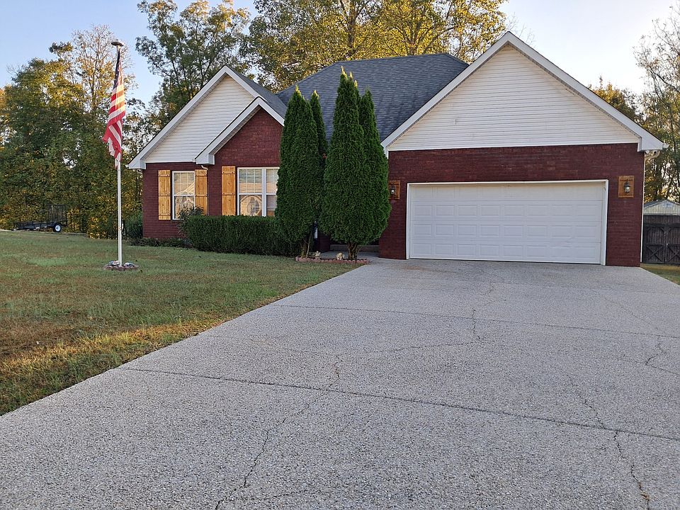 Charming all-brick and vinyl, one-owner home featuring 3 bedrooms and 2 bathrooms, perfectly situated on spacious acreage. This well-maintained property offers a welcoming living room with a cozy natural gas fireplace, a kitchen with granite countertops, and a spacious open floor plan. The primary bedroom includes a double vanity sink and a large walk-in closet. Additional highlights include new LED exterior perimeter lights, custom cedar shutters, new porch and garage lights, a high-resolution 8-camera security system, and a new HVAC system with natural gas heat. Multiple out buildings. The large shed features a full wood shop with a dust collection system that can remain. Conveniently located just 10 minutes from shopping, dining, and local amenities, this home perfectly combines peaceful country living with nearby convenience!