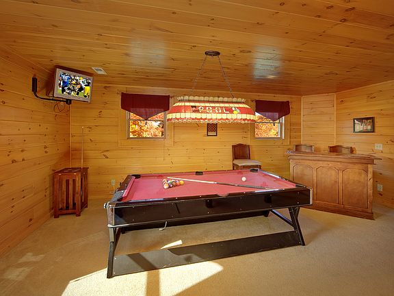 This luxury cabin has it all including gameroom with foosball, pool table, & air hockey. Both bedrooms have premium King beds. Wraparound porch is a nice feature, as this cabin shows great curb appeal. Location has city utilities and is walking distance to River & Parkway in Pigeon Forge. When the Pigeon Forge Convention Center & Cal Ripken Experience Complex opens less than 1 mile away, this Private Pool cabin will be a 300 night plus rental occupance! Super High Demand Log Home in City Limits! Deal of the Year selling well below purchase price. GONE SWIMMING cabin rental is one of the top cabin rentals in all of the Smokies!