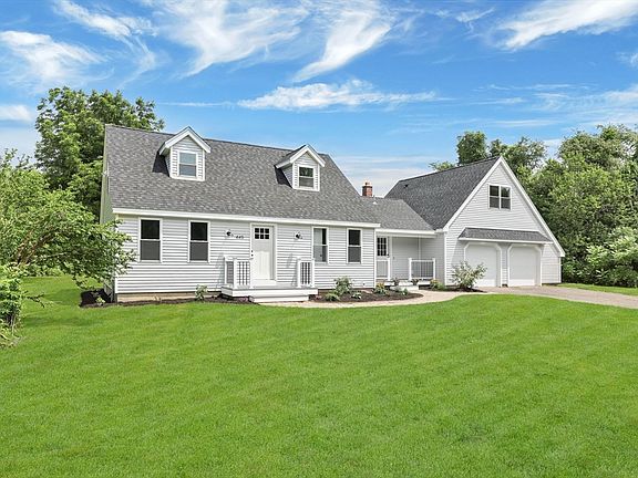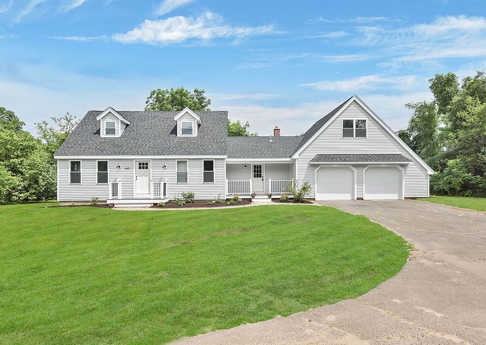 Fully renovated 5-bed, 2.5-bath modern Cape with around 2500 sq ft of beautifully updated living space on over 3 acres of land. Enjoy a brand-new kitchen with quartz countertops, soft-close cabinets, stainless steel appliances, gorgeous island and a built-in coffee nook. Two bedrooms on the main floor and two upstairs offer flexible living options. Spacious bonus room with a private half bath over the garage is perfect for an office, guest room that can even be used as 5th bedroom. Bright sunroom features cathedral ceilings and French doors leading to a new 12x16ft Trex deck. Oversized 2-car garage with new doors and openers. Upgrades include new Harvey windows, roof, gutters, doors, siding, plumbing, electric, up to date insulation and an ultra-efficient heat pump system for year-round comfort. New Septic system is being installed. Nothing to do but move in!