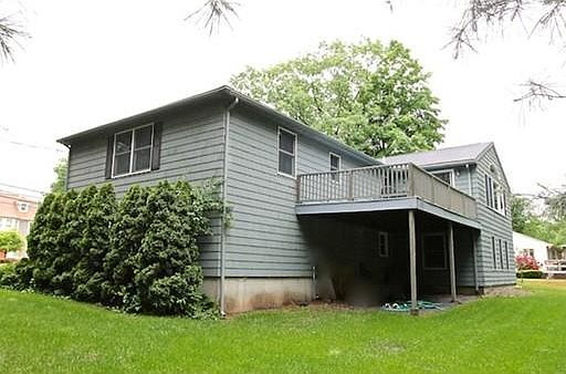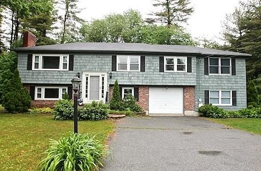 Beautifully expanded Raised Ranch home perfect for entertaining in large open kitchen / dining / family room area. Kitchen offers beautiful granite counter tops, 5 burner stove, new microwave and lots of extras for those who love cooking! Step from upstairs family room area to deck overlooking lovely private yard that abuts conservation land. CHOOSE FROM 2 LARGE MASTER BEDROOMS SUITES with PRIVATE BATHS. Main bathroom boasts brand new counter top. Addition added 19 years ago was built as a handicap accessible area. (outdoor elevator was eliminated, but potential to convert if you have that need). Central Air Conditioning, fireplace & WALK TO TRAIN STATION! This home offers great potential for extended family members, in-law, teen or Au-Pair suite! Plenty of storage space too.