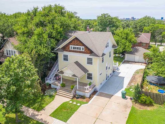 Location, Location, Location! This just may be your new home in the perfect spot of Wichita if you hurry! Walking up to this three story, five bed, two and a half bathroom home the first things you notice are the covered porch where you will want to have coffee and watch the sunrise and the brand new concrete driveway. Walking in you are greeted by a huge living room with gorgeous wood floors, charming built in bookshelves and window bench and gas fireplace. You start seeing all of the brand new light fixtures throughout. Next you are in the dining room which leads you either to the kitchen or the enclosed back porch room. You go through French doors to the back porch room which has so many options for you to utilize if for, an office, plant room, workout room, mudroom, reading room and so much more. Off of the kitchen and enclosed porch room for your convenience is a main floor half bath and laundry room. By now you have started to notice that this home has many updates that bring out the character of this home. Now in your all new kitchen you can see yourself cooking and entertaining with the new cabinets, new butcher block countertops, new dishwasher, new sink, new stove and white subway tile backsplash. The 2nd floor of the home has two points of access - one from the kitchen and one from the living room. You are also starting to enjoy the natural light from all of the windows on all levels. The 2nd floor has its own full bathroom and four large bedrooms. And wait until you see the room with all the windows that gives you a view out back! Up to the 3rd floor you are now in your getaway master suite that has extra closet space and a massive bathroom. This floor has an escape door that leads to stairs on the outside of the home and it would be perfect to build a deck off of if you choose to do so. Throughout the home there are some new windows. Back on the main floor out the back sliding door there is a big deck (where you can now watch the sunset) with a pergola cover that leads into a backyard perfect for entertaining. Here you also see the detached garage. Some of the plumbing and electrical has been updated. There is a brand new HVAC system for the upstairs. Roof, water heater and other HVAC have all been inspected by professionals and checked out. Besides closets and storage on each of the main levels you still have a basement to boot. And how about the central location close to all the amenities Wichita has to offer. Hurry this one really will not last!