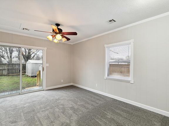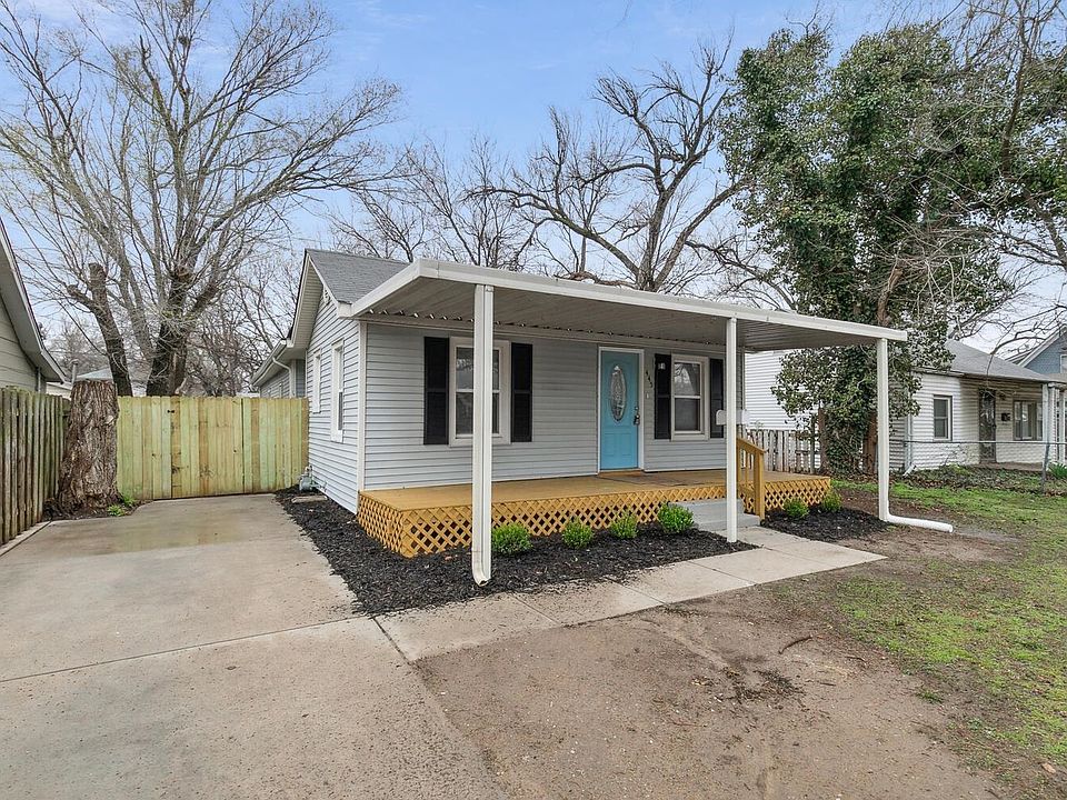This super cute four bedroom bungalow near Riverside has great curb appeal, with a covered front deck that invites you to relax in a cozy seating area, perfect for enjoying your surroundings. Step inside and check out the fresh, neutral paint, brand new carpet, and brand new luxury vinyl flooring throughout. The sunlit living room has bright windows and crown molding. The well-appointed kitchen offers plenty of cabinet space for storage, stylish subway tile backsplash that adds a contemporary flair, and stainless steel appliances that are included for your convenience. There's also an adjoining dining area where you can enjoy your morning coffee. The conveniently-located laundry room features built-in cabinets for storage. With four spacious bedrooms, each with sizeable closets, this home offers flexibility. The fourth bedroom with sliding glass doors could serve as an additional living space, if desired. Completing this home is a large full bathroom with built-in storage shelves. This home is located close to the wonderful amenities of Riverside, including Riverside Park, Botanica, the Wichita Art Museum, Exploration Place, and more, plus it's close to Old Town, quick highway access, restaurants, shopping, Friends University, and so much more. Schedule your private showing and come see this home today before it's gone!