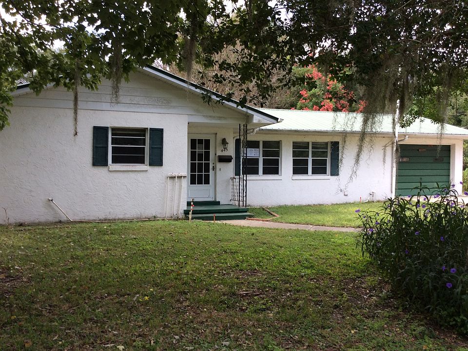 Concrete block 2 bedroom 1 and a half bath with metal roof located in Crescent City. This house features a 200 amp service, one car garage, new a/c, heat, new 50 gallon hot water heater, new laminate flooring, fresh paint inside, fenced back yard with beautiful crape myrtle.
