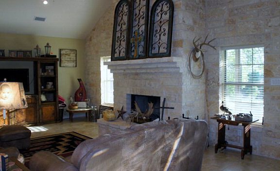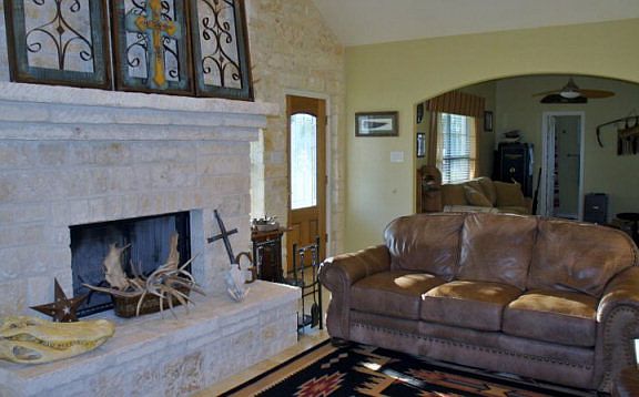 What a lovely, clean rock home with large trees and views from the quaint front porch. Long range view from porch is so inviting to sit and relax. High ceiling in main room allows for open floor plan to enjoy the fireplace focal point. Granite counter tops and custom cabinetry in kitchen are very well appointed. Back porch is open to a treed back yard to enjoy evenings of BBQing. Don't miss this area of nice homes in a ranch style atmosphere. HOA Community Park offers swimming pool, tennis courts, playground and covered picnic pavilion. BRR also has the River Park open to owners for overnight tent camping and fishing. SO much value here and only 4 miles to Bandera.