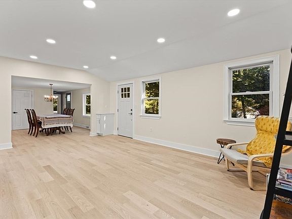 This beautifully updated 4-bedroom, 1.5-bath home blends modern design with everyday comfort. The first floor was completely renovated into an open-concept layout featuring a spacious living room, modern kitchen, and dining area — perfect for gatherings. Step onto the new 20x10 deck overlooking a freshly sodded yard. Bathrooms feature modern fixtures, an oversized Kohler tub, and upgraded toilets. All appliances run on natural gas, keeping electric costs low. Upstairs offers four generous bedrooms with recessed lighting and gleaming hardwood floors. The driveway connects to a two-door garage with an additional half-round drive for easy parking. Surrounded by scenic ponds ideal for swimming, canoeing, and fishing, this move-in-ready home combines modern updates, efficient design, and outdoor recreation in one perfect package.