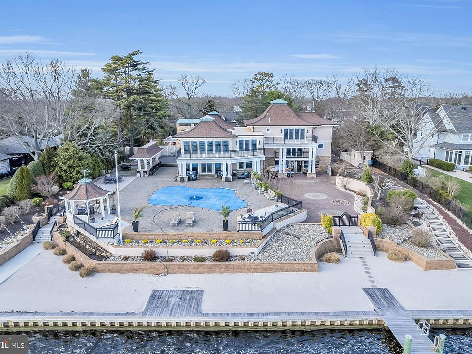 The Craftsmanship and Detail of this Magnificent Home will Astonish you as well as the Breathtaking View of the Metedeconk River. This Custom Built 9575 Square Foot Home offers 147 feet of Waterfront plus a Private Beach area, Vinyl Bulkhead, 100-foot Pier, plus Two Jet Ski Lifts. This Home is so Impressive from the 28-foot Cathedral Ceiling with a wall of floor to ceiling windows plus a Beautiful Stone Fireplace. 6 Bedrooms which include 3 Master Suites, 6 1/2 Bathrooms, Gym, Game Room, Media Room, Sauna, Wine Room , Surround Sound throughout the home, Radiant Heat with Multi-Zoned Heat and Air. The Oversized Gourmet Kitchen offers top of the line Stainless Steel Appliances with a Sub-Zero Refrigerator, 4 Dishwashers, Warming Drawer, Large Counter Bar, Double Oven plus a Stove-Top Grill plus Granite Counters and a Formal Dining Area. There is a Bonus Apartment located over the 2-Car Garage. The Backyard is like a Private Resort with a Concrete Pool, Bar and full Outdoor Kitchen for entertaining. Seller has all approvals for boat lift. This Home is the Finest in Living and Entertaining. Swim in the Pool, Relax while Watching the Boats go by and Enjoy the Serenity of this Waterfront Paradise!