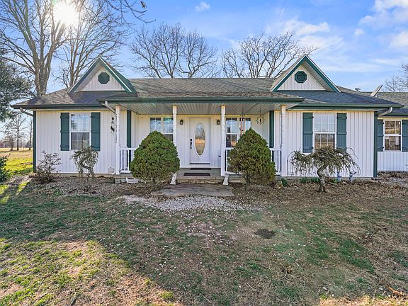 445 Rosemead Rd, Rogersville, MO 65742.Welcome to your piece of the country! 13 mostly open acres and well built 6x6 construction home. View sunrises on the stocked pond from the covered front porch! Walk in to the large central living room, 36'' door openings, separate laundry room, pellet stove, master with large closet and trap door to hidey-hole. 23.5' deep garage. Outside are raised garden beds, 2 owned propane tanks and frost-free hydrants. 36x36 metal Shop building with 14' ceilings 12x12 door, bathroom and heat/air unit. 60x80 metal Barn with 12' ceiling, a slider door at each end, 6'' thick gravel base floor, wood backs for stalls, built-in ladder over tack room, wash bay with frost-free pump and plumbed for bathroom. In the country but close to town! Rogersville schools!