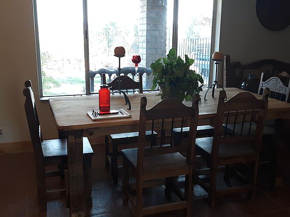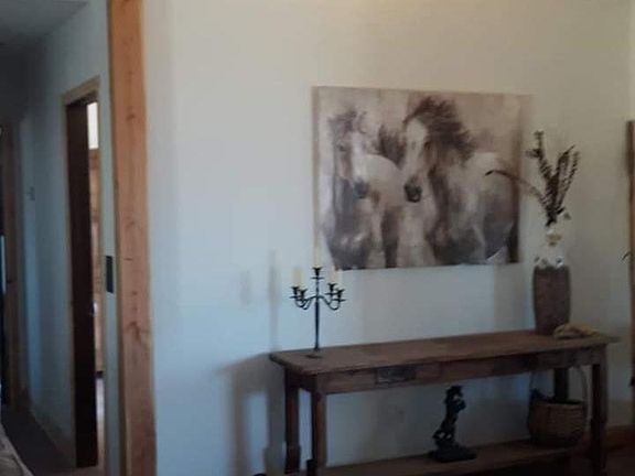 2.5 acres bordering state land. Furnished. Huge kitchen. Two suites with private bathrooms and Arcadia doors that open onto view patios.. Fireplace. Soaking tub in larger suite. Patios 360 degree views. Fenced yard. HORSES WELCOME! 1 year minimum lease.