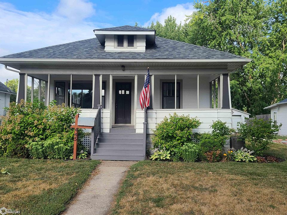 Buyer had a personal financing glitch so we're looking for a new buyer! Check out this adorable, well cared for bungalow with improvements! Curb appeal GALORE - newer roof, and paint just to get started. Up the stairs to the welcoming front porch, through the front door into a spacious living room and dining room. On into the renovated kitchen (appliances included). 2 large bedrooms ( 1 with laundry hook-up in the closet) and a GORGEOUS full bath! The full basement currently is used for laundry, has a bath and tons of storage or flex space to meet your needs. Out the back door is a huge beautiful paved patio. The 1+ car garage is large and there's an attached, covered carport. Plenty of off-street parking. Call your favorite Realtor to schedule your private showing! Pre-approved buyers please.