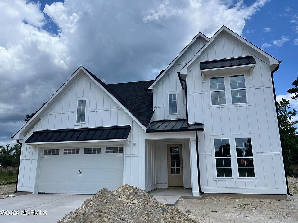 The Whitley Plan by Robuck Homes offers an inviting foyer and an open main living area, which makes for great entertaining space. This Modern Farmhouse style has access in the dining area out to the covered porch, and also includes a fireplace in the family room. The upstairs has a large primary suite, 2 bedrooms and a finished bonus room. With a guest suite room on the first floor, you'll have plenty of working and living accommodations for the entire family. The large pantry, first floor powder room and mudroom are special features that make this home perfect for enjoying life at the coast!