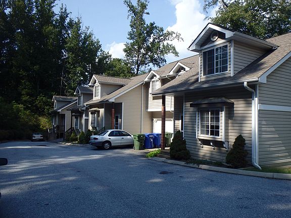 One of Asheville's premier group of townhouses (total of six units) located near the booming West Asheville/Haywood Road shopping area, and convenient to the Asheville Outlets. These units have hardwood floors throughout on the first floor, living room with vaulted ceilings complete with ceiling fan and gas log in a stone fireplace, deck off of the living room through a french door. Gourmet kitchen with stainless steel appliances, including refrigerator (with ice maker), range, dishwasher, microwave and disposal. Half bath with pedestal sink downstairs. Master bedroom has vaulted ceilings with ceiling fan, while master bathroom includes jet tub and beautiful white ceramic tile. Second bedroom has ceiling fan and full bathroom off of the bedroom. Garage with garage door opener. Heat pump provides heat and air conditioning. No dogs, cats okay w/ approval & deposit. No co-signer. Please visit our website for more information or give us a call with any questions or to set up an appointment.