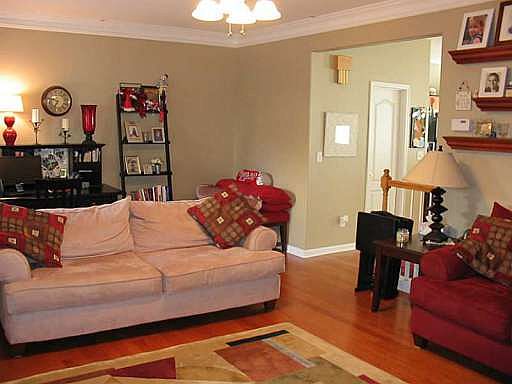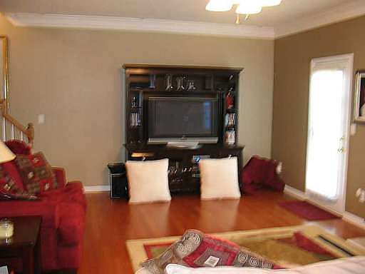 3 story Townhome with 2 Bedrooms 2 full baths and 2 half baths with large bonus room off 2 car garage. Hardwood floors in living area and Berber carpet in bedrooms. Great location, walking distance to shopping and restaurants in addition being close to 400. Community pool and tennis court. Small dogs ok.Rent includes HOA fees which covers the water, property maintenance and amenities.