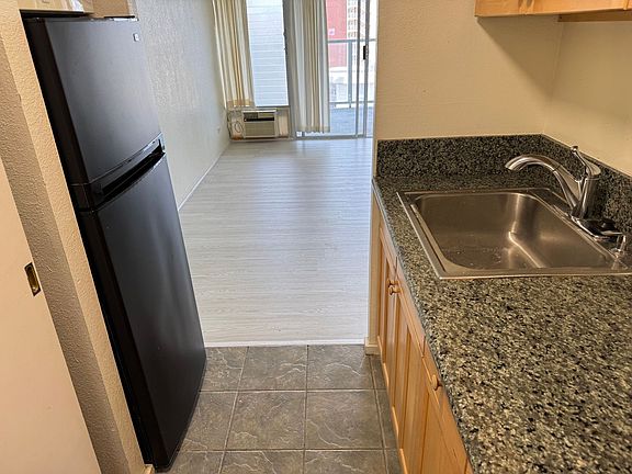 Island Colony, newly renovated studio, located on Seaside near Ala Wai, Royal Hawaiian, Waikiki Shopping Centers, restaurants, lounges, beaches, parks, jogging path, etc. This studio was just renovated with new vinyl plank flooring, bath cabinet, has nice size refrigerator, no stove, kitchen counter and sink, etc.