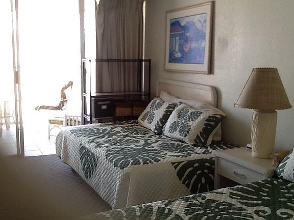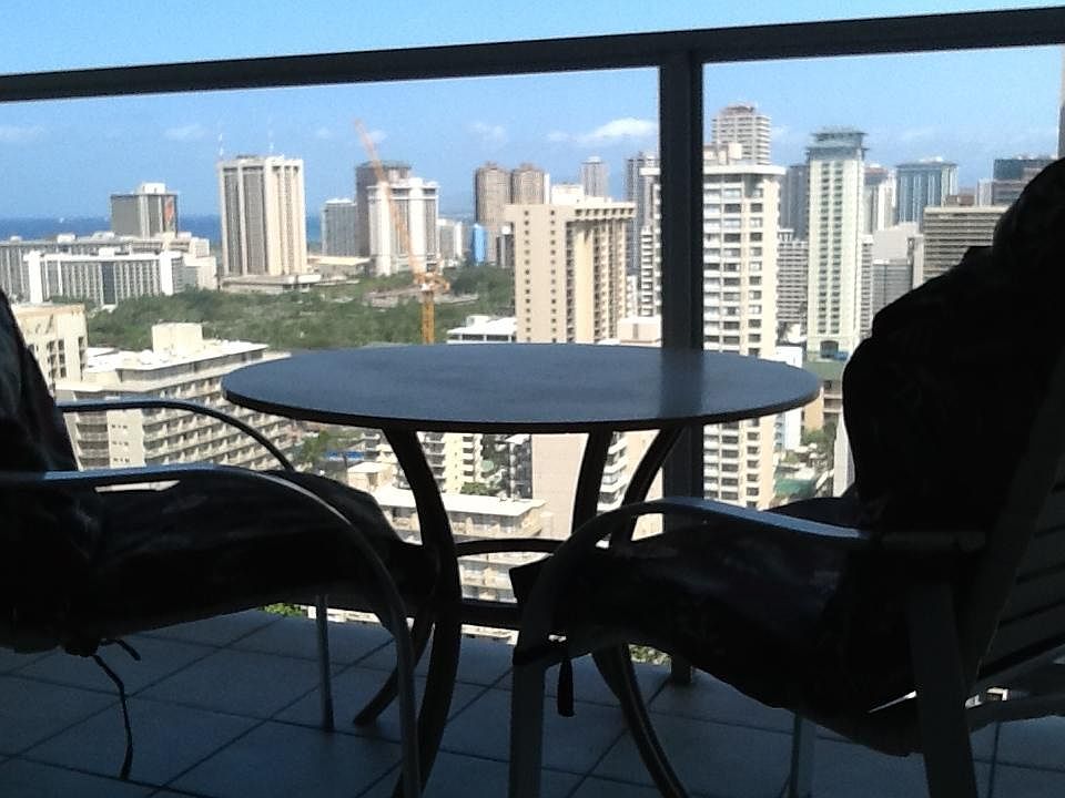 Fully Furnished Studio. High Floor. Large private lanai. Panoramic sunset views to Waikiki, and the Sea. Walk to beach, shops, restaurants. 2 full size beds Kitchenette with full fridge, kitchenware, etc INCLUDES: Internet, Cable TV, A/C, phone, Utilities. Sun Deck, pool, sauna, Jacuzzi, workout room, laundry, barbecue Well-maintained building. Secure 24/7. Parking available. Text Carol Owner pays utilities