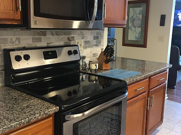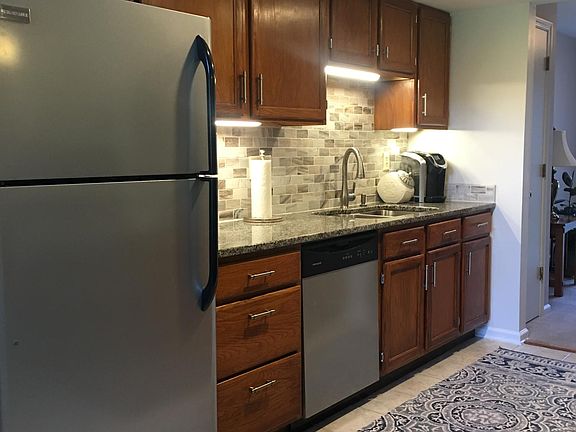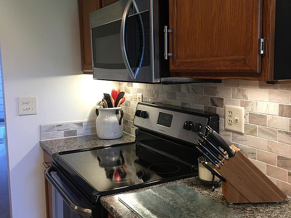 Come see this open concept condo with two large second floor bedrooms! One has a walk-in closet and the other is extra large with a good sized closet. The condo is updated with a large spa-like bathroom. The half bath is equipped with a Kohler pedestal sink and extra storage. The first floor includes living-dining area with wood-burning fireplace and sliders to rear deck. Good sized kitchen includes stainless appliances, new granite countertop and marble backsplash...adjacent to a BRIGHT OFFICE, formal dining room, or den. A slider opens to a front patio that offers complete privacy from outside world! The condo is painted in soft, neutral colors. One car garage with storage. A well-mannered dog will be considered...with a responsible owner! Dogs must be on a leash at all times and waste must be picked up immediately! Erie Village is convenient to grocery, restaurants, and health facilities. The YMCA, Target, Tops, and TJMaxx 3 minutes down the road. Trader Joe's and Wegman's are 8 minutes away. The Erie canal and it's walking paths are just down the road. Golfing is located at the Links, minutes from home and live music all summer long on Wednesday nights. The drive is approximately 20 minutes to SU and the hospitals...and a short drive to the new Amazon location! The complex has several lakes...one is for kayaking and swimming. People are friendly...it has a homey, yet upscale feel! And is very safe! Applicants will be subject to credit and background checks, paid for by same. Owner pays HOA fees. Renter responsible for all other utilities