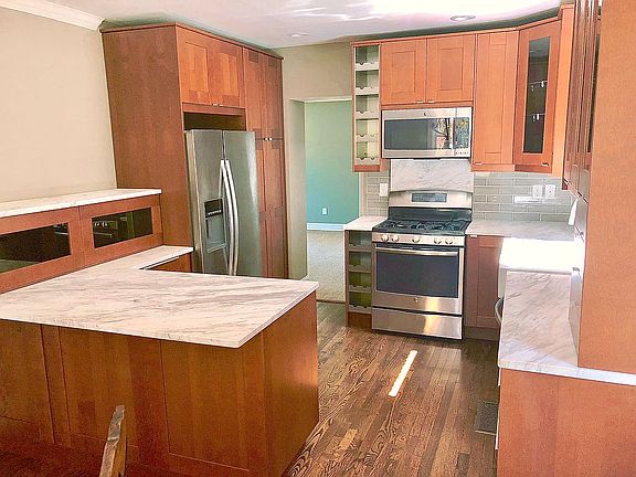 - Kitchen Features: Breakfast Bar, Cabinets Stain, Pantry, Eat-in Kitchen, Solid Surface Counters, Stone Counters, View to Family Room