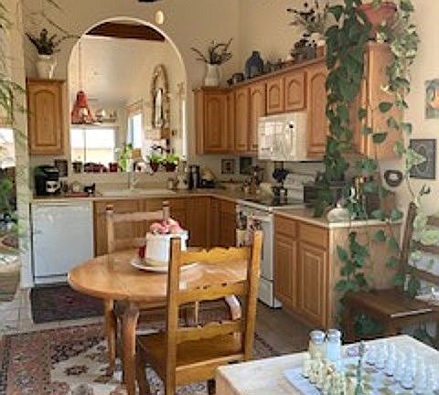 Full time home in a wonderful golf course community with option to multi-purpose as a vacation home with short term income rental potential. Unit offers vaulted ceilings, large view windows & skylights to make it light, bright & cheerful. Both bedrooms & kitchen/dining & living room access outdoor patios where the views are TREMENDOUS! Tile floors in living room & kitchen/dining areas. Rich, dark, vinyl wood plank flooring in bedrooms. End unit location! Newer HVAC. HOA of $440 per mo provides free amenities, landscaping, roof maintenance, exterior painting & repairs, gutter cleaning, trash collection, sewer fee, pest control & handyman services by on site maintenance crew. LAST showing opportunity is this Friday, 3/19- 9:00 a.m. to noon.
