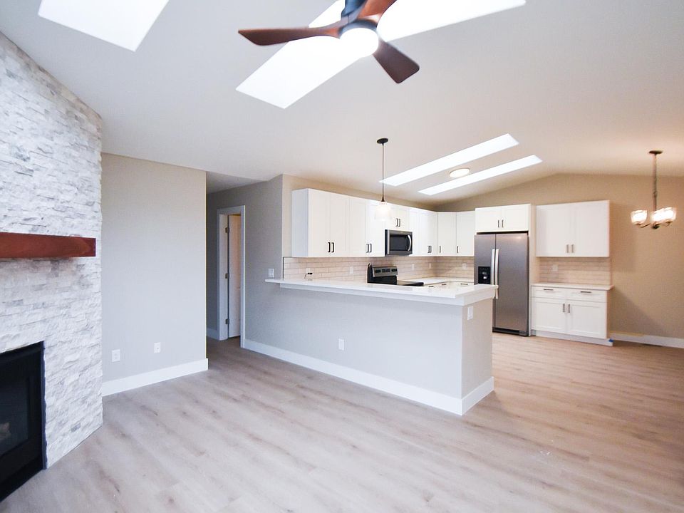 All brand new! all new half of duplex 2 Bd 1 Ba with fire place large kitchen sky lights, wood floors granite counter tops. 2 car garage with large corner lot. must see wont last long.