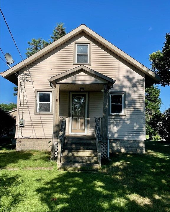 Charming Cape Cod home, with convenient first-floor living. The spacious eat-in kitchen is adorned with oak cabinets and offers room for a cozy coffee bar, making it a perfect spot to start your day. The dining room is highlighted by a built-in hutch. Upstairs, you'll find two additional bedrooms, one that includes another built-in. The unfinished basement opens up possibilities for hobbies such as woodworking, offering ample space for creative projects. A washer and dryer are included. Outside, a covered porch invites you to relax and enjoy the serene atmosphere of the private double lot. A one-car detached garage and shed provide extra storage space, while the driveway offers plenty of room for additional parking.
