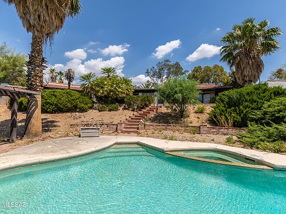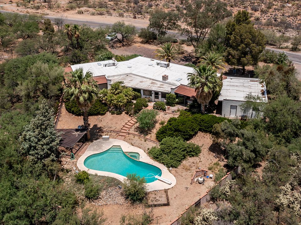 * Sturdy burnt adobe home on 2.53 acres offers sweeping mountain views from the home and pool area. Features include a huge primary bedroom suite with an attached office and also a den with built-in cabinetry.The large living room opens to the expansive Arizona room and includes a wet bar, beamed ceiling, and a fireplace. The patio area with mature vegetation and a pond leads down to the pool area and Ramada. This home has been owned by one family since 1977 and is in need of some updating. Please don't miss this diamond in the rough!