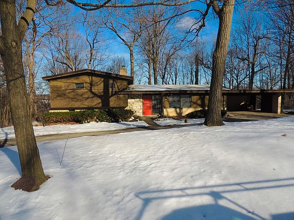 Here is your chance to own a truly unique home! This Mid-Century Modern, Tri-Level home, backs to a conservancy and is located in Brookfield. The home sits on a hill and has spectacular wooded rear views. Enjoy summer cookouts in your peaceful back yard on one of two patios. The unique Cantilever construction of the 2nd floor master suite provides a large covered patio just off the family room. The interior boats on open concept with floor to ceiling windows. Recent updates include lighting and central air.
