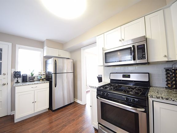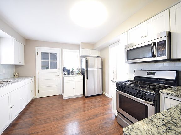 Accepted Offer - Accepting Back-Up Offers. This 4 Bedroom, 2 bath 1940's charmer has been completely renovated and restored with its original character. Hardwood laminate flooring throughout. The roof was new in 2015 and the whole interior & exterior were professionally repainted 3 years ago. Entering the foyer, there are 2 separate coat closets, a spacious living room with wood burning fireplace, a formal dining room, and an updated kitchen with granite countertops, stainless appliances, and glass subway tile. The master bedroom is located on the main floor and offers double closest as well as built in bookcase. Laundry is conveniently located near the master bedroom. Upstairs, there are 3 large bedrooms and a beautifully updated bath. A large back yard with patio area for grilling.
