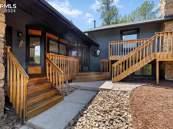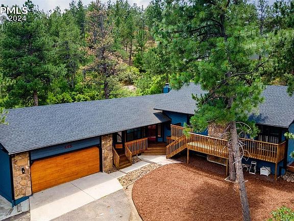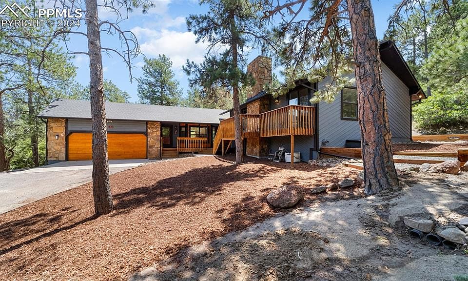 Nestled at the peaceful end of a quiet cul-de-sac in Rockrimmon, this beautifully remodeled 4-bedroom, 3-bathroom home epitomizes contemporary comfort and style. Surrounded by mature trees and a beautifully terraced lot, the property offers both tranquility and charm. Step inside where every detail has been thoughtfully crafted. All-new exterior and interior paint sets the stage for a fresh, modern aesthetic throughout. Custom stair rails guide you to the upper and lower levels, where plush new carpet invites you to unwind, while luxury vinyl plank flooring on the main level ensures easy maintenance. The heart of the home, the kitchen, boasts brand-new stainless steel appliances, granite countertops, sleek new cabinets, and updated light and plumbing fixtures. Entertain effortlessly in the living room, graced by vaulted ceilings, a cozy fireplace, and built-in shelving. Sliding doors lead to a rear patio, seamlessly extending indoor-outdoor living. Upstairs, the primary suite is a haven of comfort, featuring a private fireplace, access to a multi-level deck, and a spacious walk-in closet. Pamper yourself in the newly remodeled 4-piece bathroom, complete with a double vanity and a tiled walk-in shower. An additional bedroom and a remodeled full bathroom with fresh flooring and a stylish vanity complete the upper level. The lower level offers flexible living space with a family room warmed by a wood-burning stove, perfect for gatherings or relaxation. Two more bedrooms and another remodeled full bathroom provide ample accommodation options. Conveniently located just minutes from Blodgett Open Space and Ute Valley Park, outdoor enthusiasts will revel in nearby trails and natural beauty. Easy access to I-25 and the USAFA makes commuting a breeze, while neighborhood shopping and local dining options cater to everyday needs and adds to the allure of this desirable location.