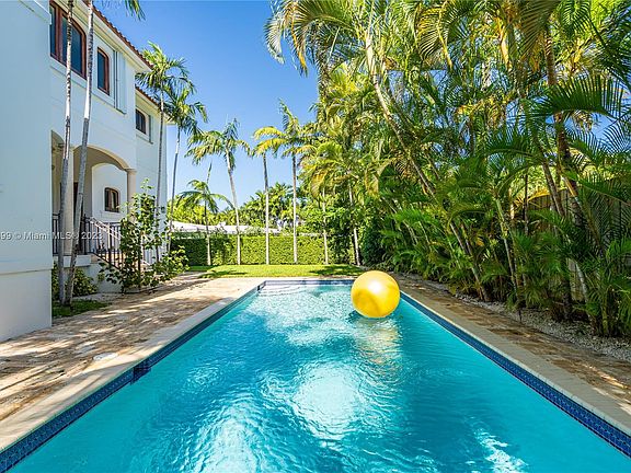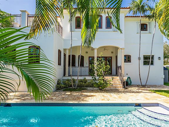 This wonderful elevated home has a fantastic layout with 5 Bedrooms plus an Office, 4/1 Baths and high ceilings. First floor consists of an ample foyer with formal dining and living room area, one Bedroom next to a full cabana bathroom, plus an Office and a powder room. Separated large family room, open kitchen and a very comfortable breakfast area filled with natural light. Second floor features a total of 4 Bedrooms and 3 Bathrooms (one of them is a Jack and Jill bathroom) with a very ample master suite with private terrace. Third covered terrace is a bonus: ideal to use as a gym, game area or another gathering area. Enjoy your spectacular pool with a very ample garden on the side, manicured landscaping with elegant palm trees, located steps from the Village Green.