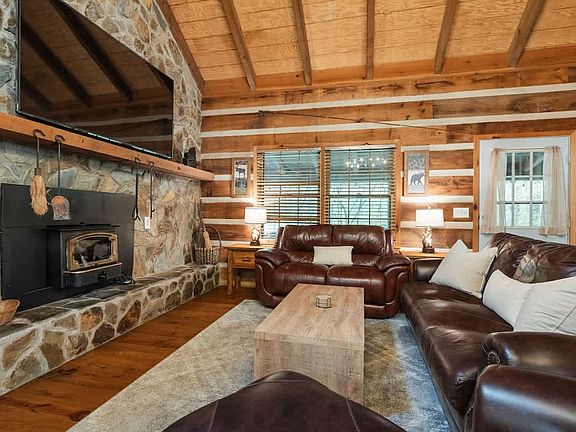Welcome to Creekside Cabin, a luxury log cabin nestled in the heart of the Aska Adventure Area at the foot of the Blue Ridge Mountains. Feel at home as you step out onto the large wrap-around porch and immerse yourself in nature, surrounded by lush trees and the soothing sounds of a babbling creek. This cabin offers a serene escape, just minutes away from incredible hikes, fishing, horseback riding, and white-water rafting. This modern 4-bedroom cabin spans three levels and comfortably accommodates up to 12 guests, making it perfect for family vacations, large groups, or retreats. The cabin features a super comfortable living room, a chef's dream kitchen, two dedicated office workspaces, wrap-around porches, a hot tub, a luxury gym, a lounge game room, a BBQ, an outdoor playground, and a firepit by the creek. Each bedroom is thoughtfully designed for comfort, and the bathrooms are equipped with essentials like shampoo, conditioner, body wash, and extra towels. The cabin offers multiple parking spots in a private driveway, accommodating the whole family. Enjoy the luxury gym equipped with a comprehensive selection of fitness equipment, and unwind in the hot tub spa after a day of adventure. The outdoor playground provides endless fun for kids, and the BBQ grill is perfect for family cookouts. The cabin is tucked away in a secluded setting, ensuring peace and tranquility with no nearby neighbors to disturb your stay. The neighborhood is surrounded by trees and mountains, offering a quiet environment for strolls. For adventure, a car is necessary to explore nearby attractions such as Toccoa River Tubing, Noontootla Creek Farm, Gem Mining, and Aska hiking and mountain biking trails. Downtown Blue Ridge, with its shops and attractions, is just a short drive away. The cabin is located in the woods, which may affect cellular reception, but high-speed Wi-Fi is available for internet calls. There are multiple flights of stairs, which may not be suitable for those with accessibility needs. Entry is via a personal smart lock code provided after booking. Quiet hours are from 10 PM to 8 AM, and guests are asked to ensure the firepit is fully extinguished after use and to cover the hot tub when finished. Be cautious of wildlife, including bears and snakes, and use bug spray when outdoors. Smoking inside the home is prohibited, with a fee for odor removal if violated. Parties and events are not allowed unless approved, and guests are asked to respect neighbors' space and maintain quiet hours. The cabin includes two dedicated office workspaces, providing one of the best work-from-home experiences. High-speed Wi-Fi ensures seamless connectivity for all your remote work needs.