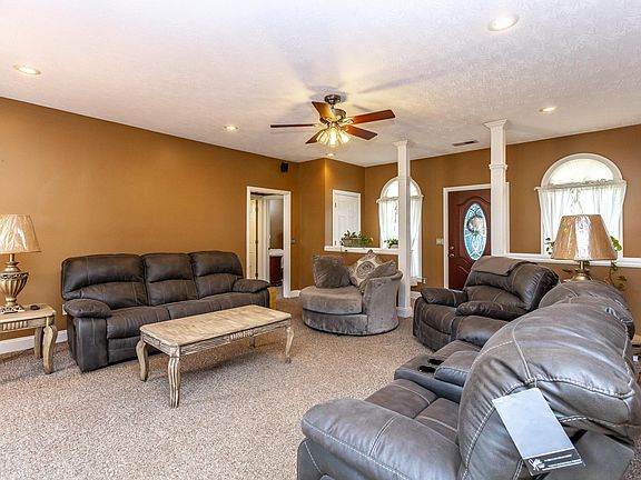 Come take a look at this beautiful brick ranch on almost 3 acres. This 3 bedroom 2 full bathroom home is conveniently located less than a mile from US 127 and close to the Bluegrass Parkway! As you step inside, you will be greeted by a foyer that opens to the living room with gas logs. Upstairs features a huge, finished family room with a bar that would be perfect for movie and game nights. Outside features a huge 3 car attached garage, a salt water in ground pool, three large decks, and a storage shed. New roof to be installed beginning 3/20/2023. Do not let this amazing opportunity get away and call to schedule your showing today!