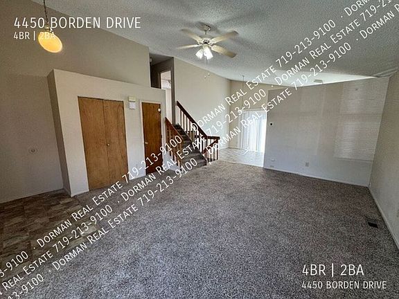 The owner of this property is offering a special incentive of $500 off the first month of rent! Please contact us if you have questions. Welcome to this great 4-bedroom, 2-bathroom home located between Ft. Carson & Peterson SFB. This tri-level property boasts a spacious layout with vaulted ceilings, creating an open and airy atmosphere. The home is equipped with central air to keep you comfortable year-round. Step outside to a generous deck overlooking a fully fenced yard, perfect for outdoor entertaining or simply enjoying the Colorado sunshine. The home's prime location offers convenience at your fingertips. It is situated near a school, making morning commutes a breeze. Shopping enthusiasts will appreciate the proximity to local shopping centers. The home is conveniently located near the airport, military bases and the Powers corridor. Experience the perfect blend of comfort, style, and convenience in this Colorado Springs gem. Please check out our application handbook by copying and pasting the link below into your web browser Please read carefully. Please remove spaces when inputting in your web browser PHOTOGRAPHY/VIDEOGRAPHY DISCLOSURE: We do not take new marketing pictures whenever a rental is turned over between tenants. Therefore, the photos we provide on our listings are meant to help potential residents see the general layout of a property they do not represent the current/actual condition. If you would like to better understand the condition of a listing, please schedule a personal viewing. COLORADO HB23-1099 DISCLOSURE: PROSPECTIVE TENANTS HAVE THE RIGHT TO PROVIDE TO DORMAN A PORTABLE TENANT SCREENING REPORT, AS DEFINED IN SECTION 38-12-902 (2.5), COLORADO REVISED STATUTES; AND IF THE PROSPECTIVE TENANT PROVIDES DORMAN WITH A PORTABLE TENANT SCREENING REPORT, DORMAN IS PROHIBITED FROM: 1) CHARGING THE PROSPECTIVE TENANT A RENTAL APPLICATION FEE OR 2) CHARGING THE PROSPECTIVE TENANT A FEE FOR THE LANDLORD TO ACCESS OR USE THE PORTABLE TENANT SCREENING REPORT. While Dorman does accept compliant portable screening reports as defined by HB23-1099, which would result in no application fee being required (or possibly an application fee refund), we do still require that all tenants complete our application (click APPLY next to any property on our list of properties below). Additionally, you will be deemed qualified (or not) based on the screening information/data provided on our independently pulled report, not based on information/data on your portable report. Please note that bona fide and compliant portable reports MUST come directly from the consumer reporting agency. Central Air Near Airport Near Ft Carson Near School Near Shopping Tri Level Vaulted Ceilings