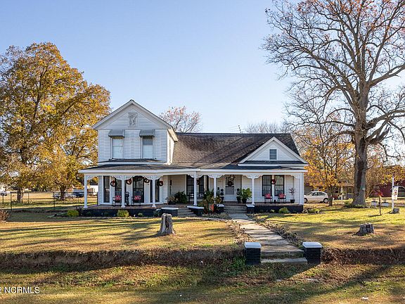 Beautifully maintained 1910 Farm house situated on nearly 3 acres at Vann's Crossroads. This three bedroom home has loads of updates. New kitchen cabinets, butcher block counter tops, island, stainless appliances, Fresh paint, updated fixtures, pantry and more! Formal Dining Room and Cozy Den with Fireplace and Shiplap. Home office with Bay window and closets that could also be used as guest bedroom. First floor master suite with modern vanities and dressing area. Second floor features beautifully refinished wood floors, totally updated modern bath and unfinished attic that could be additional living space. Out buildings and more. Great location easy commutes to Clinton, Dunn and Newton Grove for quick access to I40. Hobbton schools.