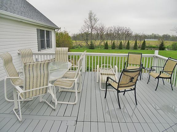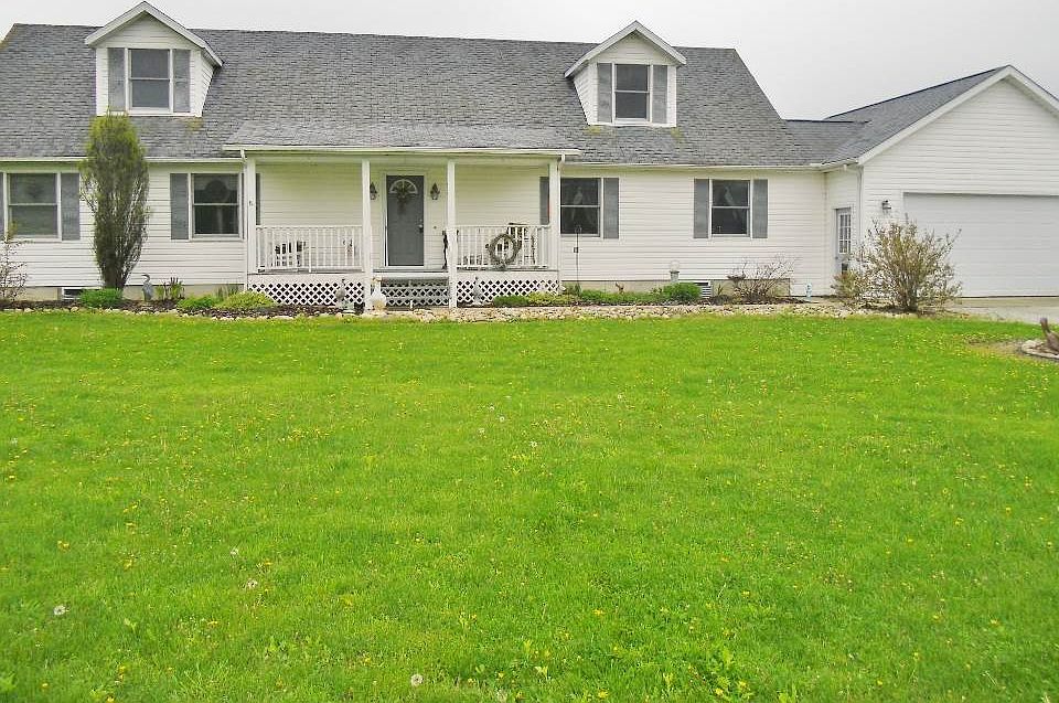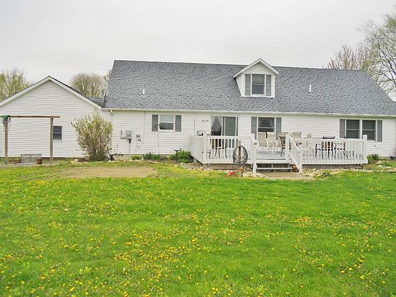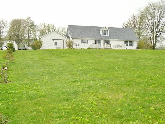 A little slice of heaven! Very well maintained cape cod home on 2 acres. No backyard neighbor, only rolling farm land just on the east side of Chain-O-Lakes State Park. Enjoy the wildlife from the large backyard deck. Large, open 2-story foyer as you enter from the comfy covered porch! Large great room. Expansive open kitchen and dining area. Hardwood cabinets, all appliances included. Breakfast bar. 4 large bedrooms, 2 including the master suite on the main level and 2 more large bdrms upstairs with Dormer windows and walk-in closets. 2nd/full bath & landing also on 2nd level. All this on a full, unfinished basement with high ceilings and insulated floor joists. Plenty of room for a large family! HMS warranty included!
