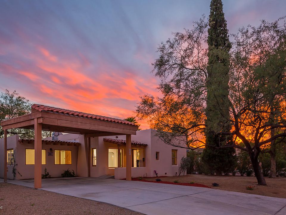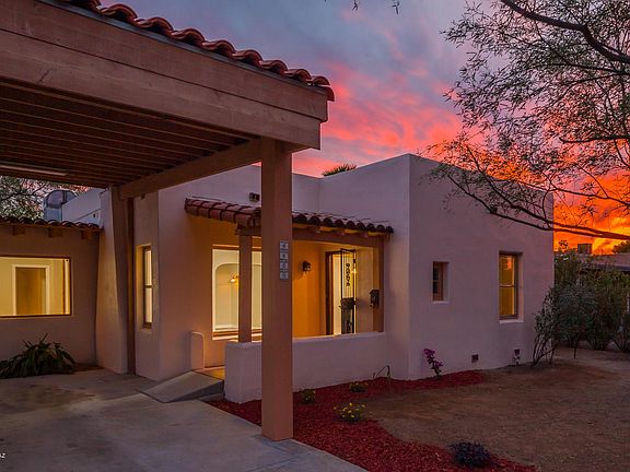 Beautiful Southwest style home in the great and well maintained Poet's Square neighborhood. Three bedrooms 2 bath with split floor plan. Remodeled kitchen, revitalized real hardwood floors, remodeled bathroom and just freshly painted. This home has a lot of character and architectural details, cozy fireplace, original solid wood doors, spacious bedrooms. Large lot with pool, Jacuzzi and a huge porch perfect to entertain. Front yard with easy to maintain desert plants give this home a wonderful curb appeal. Centrally located close to shopping, UA, and hiking trails.